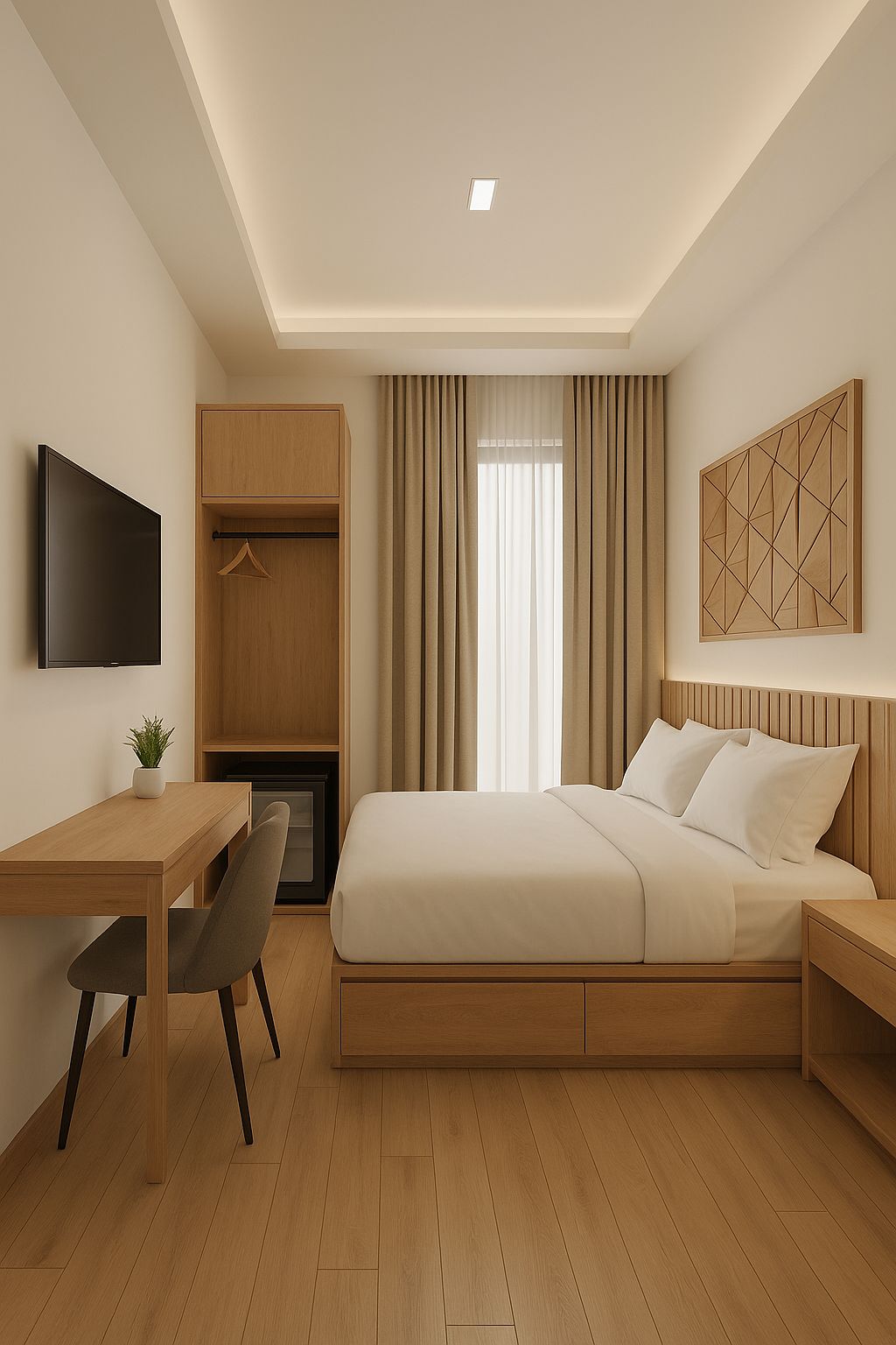 Quartos amplos, climatizados e projetados para máximo conforto em todos os detalhes.